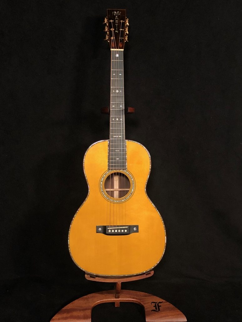 Just arrived is this stunning Martin Custom Shop 00-42 12-fret. This guitar was a 2013 namm show display guitar. Beautiful Madagascar Rosewood with a Adirondack top. It has a sweetness to the trebles with a the richness only a 12-fret guitar can do. This guitar is in mint condition.