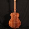 Besides the beautiful look of this guitar the tone will leave you with a smile on your face every time you play.. The figured Koa on the back and sides is eye catching and the Swiss spruce top adds the sweet trebles that Gerber guitars are known for. There is a remarkable amount of  string separation and clarity to the notes. Playability is great with the arm bevel too.  This guitar loves drop tunings and handles them with ease. Gerber guitars are some of our favorites here at Cedar Rock and this one is amazing.