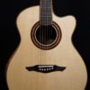 Koa bound all the way around into a full Brazilian capped headstock, both front and back! Featuring both an arm bevel and a sound port, this guitar has a very unique and bold tone! With deep lows from the Braz, and crystal clear trebles from the Italian spruce.. this guitar has aged and broken in wonderfully. Like all of the Petros guitars, the setup and playability is next to none!