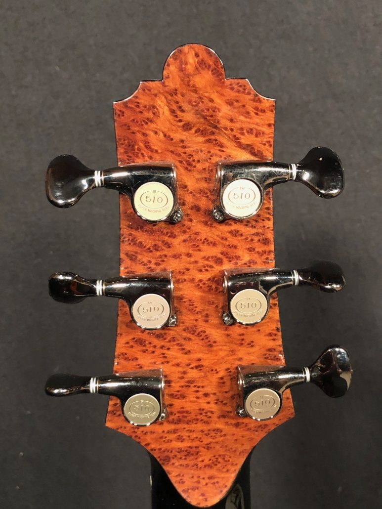 This is an incredibly exciting instrument for us here at Cedar Rock , It has a exquisite set of rare, highly sought-after Pernambuco back and sides. Paired with this extraordinary tonewood is a gorgeous Lutz Spruce top, a fabulous combination of tonewoods. It has Mario’s instantly recognizable tonality, the clear trebles and full rich bass and mids. This is a extraordinary instrument. It is in mint condition.