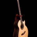 Kevin Ryan makes some of the most exquisite guitars today. This one features a stunning set of Ziricote for the back and sides and a Lutz Spruce top. The Macassar Ebony with blue abalone purflings trim are simply stunning. The voice of this one is huge, yet still balanced and clear. It’s a Fingerstylists dream, yet takes a flatpick equally as well. It feature the Ryan arm bevel with acoustic flutes. It comes in a Calton flight case.
