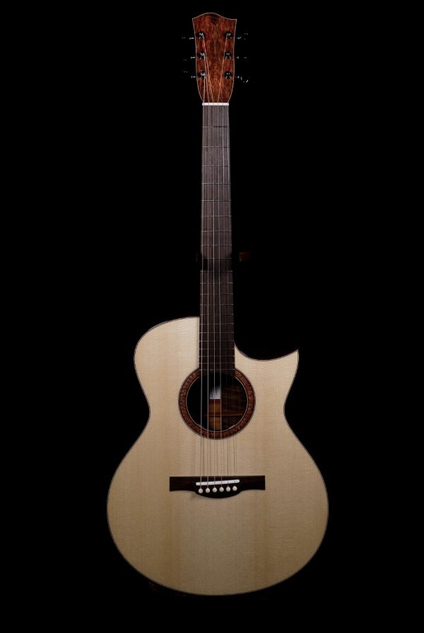 Just in at Cedar Rock Studio Guitar gallery, we have a very special 2021 Ryan Gerber RL15+. It features a gorgeous set of Flamed walnut B/S, Mastergrade Swiss moon spruce top, Cocobolo binding and micro bevel, Australian Sheoak headplate and hand carved rosette, and custom wide specs (nut: 1-25/32″, saddle: 2-5/16″) This is a phenomenal instrument that just oozes tone. It’s in excellent condition.