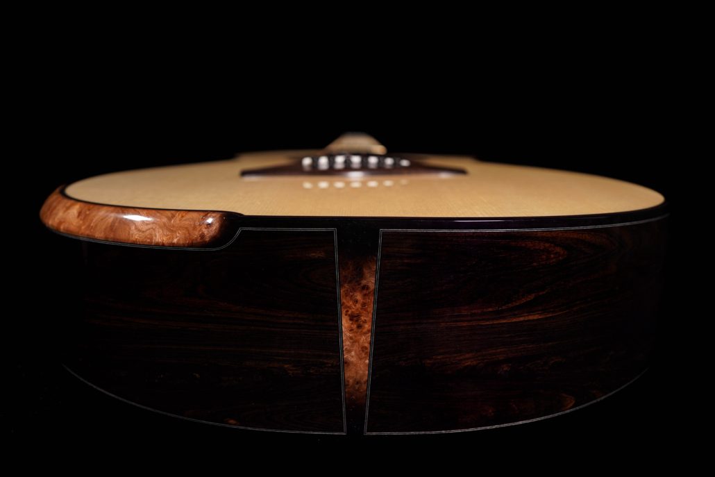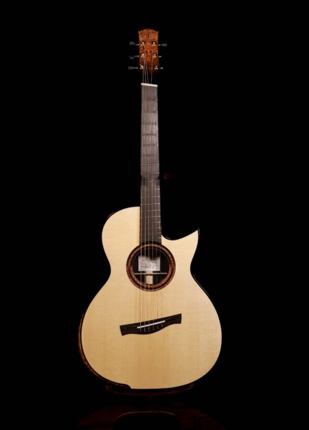 Just in at Cedar Rock is this 2022 Taran Tirga Mhor with stunning African Blackwood for the back and sides, and a Mastergrade Adirondack Spruce top with hot sand Burl appointments all around. It features a slight multiscale, and a Soundport for your own personal monitor experience. Modeled after the DS8, The Tirga Mhor is Rory’s take on a 000 and the product of discussions of his friend guitar virtuoso Martin Simpson. This is a phenomenal guitar that excells at fingerstyle but can also take a flatpick just as well. It is in like new condition.