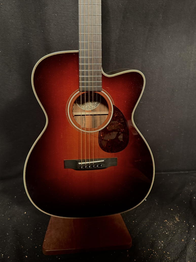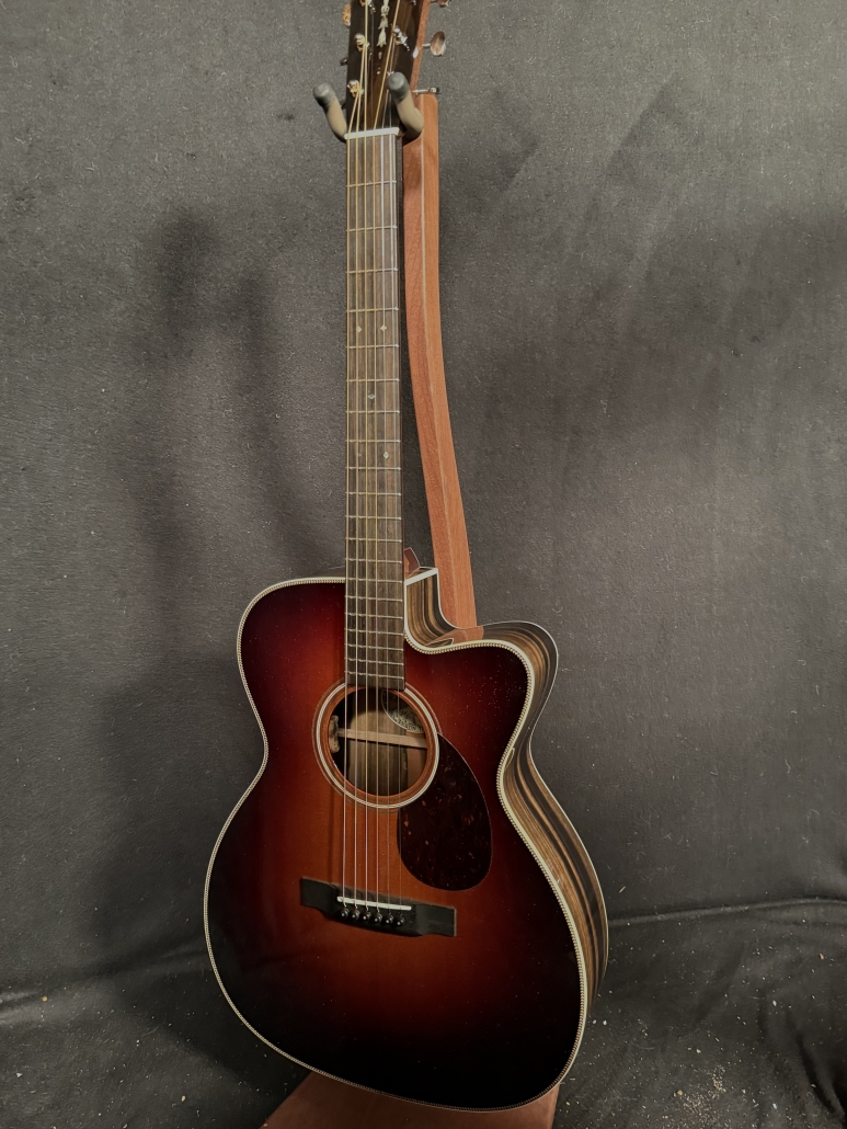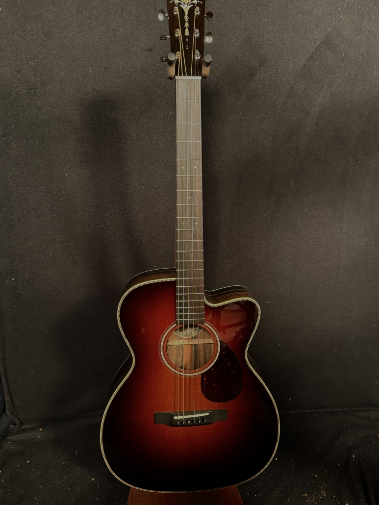 This Custom OM2H features lots of extra bells and whistles that really make this guitar stand out from the pack! It features a cutway, hand selected Crelicam Ebony on the back and sides, a Baked Sitka Spruce top, Sunburst finish and a Torch peghead inlay. As with all Collings guitar, it plays and sound fantastic. Besides the installed LR Baggs pickup this guitar is in immaculate condition an would be an excellent choice for someone looking for the Collings quality and name without the price!