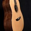 Engelmann spruce always seems to work so well for Goodall’s guitars, don’t let some generalizations about it fool you – there is plenty of headroom and clarity to this soundboard! The addition of Claro walnut offers a crisp midrange and clarity to the overall voice, there are overtones seemingly only where you need them – the trebles and upper mids. An absolute joy the to singer/songwriter or contemporary fingerstylist alike.